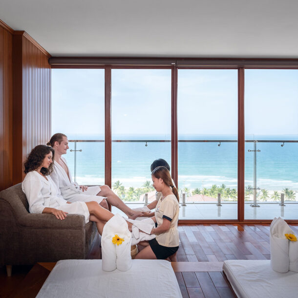 Đến với SPA, bạn đã bước vào thiên đường thư giãn và chăm sóc sức khỏe đẳng cấp. Sở hữu 19 giường Spa cao cấp với bồn tắm Jacuzzi, phòng xông hơi, phòng trị liệu dành cho nam/nữ hoặc các cặp đôi cùng nhiều dịch vụ massage, làm đẹp đa dạng..., sẽ chăm sóc cơ thể và tinh thần của bạn bằng những liệu pháp tốt nhất. Hãy đến với Sunny Ocean Hotel Đà Nẵng và tận hưởng những phút giây thư giãn, bình yên.